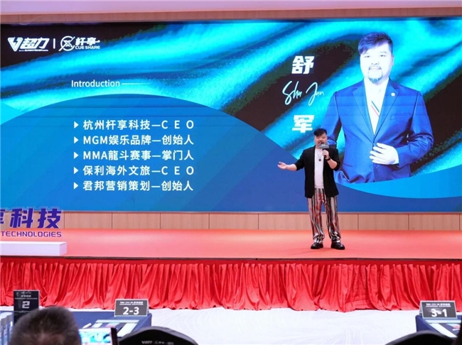 紧接着,杆享科技CEO舒军先生登台,深入阐述了公司的愿景与核心业务。舒总介绍道,杆享科技致力于为台球赛道提供一站式解决方案。公司以自主设计研发的智能台球杆租赁设备为载体,通过 “硬件+软件+服务” 的创新模式,旨在提升玩家的台球运动体验,尤其能显著助力广大中小型及自助台球房实现营收增长与智能化升级。